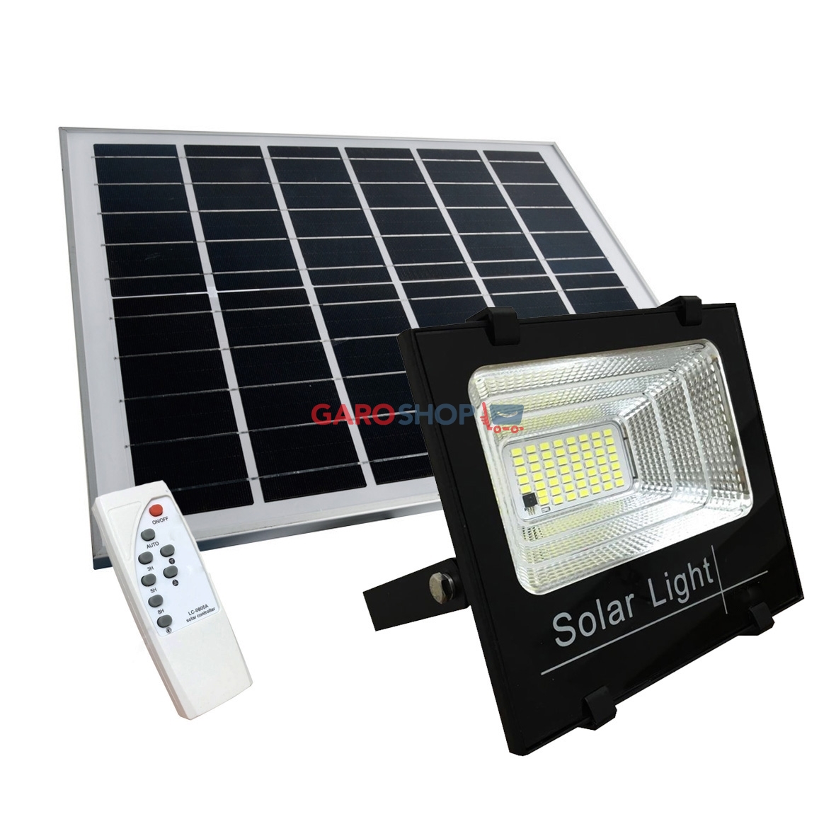 Faro LED V-Tac VT-25W con potenza di 12W e corpo in alluminio di colore nero. Composto di 2 unità separate: pannello solare in policristallino con staffa di fissaggio e faro con batteria integrata. Adatto all'uso esterno grazie al grado di protezione IP65. LED SMD con fascio luminoso di 120° e flusso luminoso di 550 lm. Questo faro ha la particolarità di essere autonomo e quindi installabile anche in luoghi dove non arriva la corrente elettrica. É equipaggiato con una batteria ricaricabile (5000 mAh) e un pannello solare che garantiscono un'autonomia di 8 ore (tempo di ricarica di 12 ore). La particolarità di questo faro è avere il pannello solare separato, con un cavo della lunghezza di 5 metri. In questo modo è possibile posizionare il pannello esposto al sole, e il faro all'interno (come ad esempio un garage). Grazie al telecomando incluso (2 pile AAA incluse) è possibile accendere e spegnere il faro, regolare l'intensità luminosa (100% / 50%), settare diversi timer di spegnimento e attivare la funzione auto che tramite lo smart sensor (sensore crepuscolare) farà accendere il faro al calare della luce.