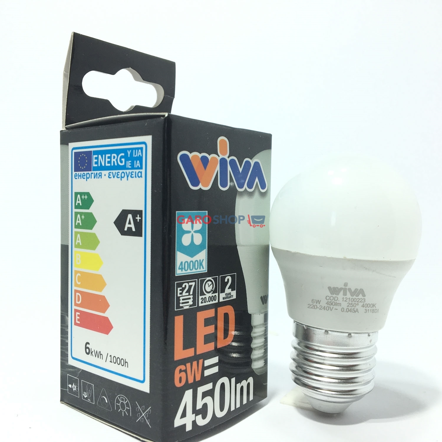 Lampadina LED Wiva con potenza di 6W e attacco E27. Forma Bulb A60 in materiale termoplastico bianco e alluminio. Fascio luminoso di 240° e flusso luminoso di 550 lm. Questa lampadina ha un rapporto di 83 lm/W. La potenza di 6W è equivalente a 45W di una lampada ad incandescenza. Lampadina con tecnologia LED SMD e copertura opaca.